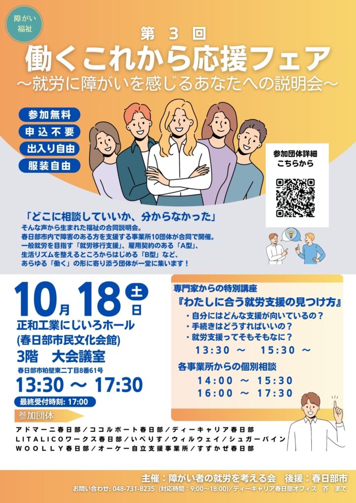 今回の合同説明会ではいろいろな事業所が集まり、どんなサポートがあるか紹介してくれるイベントです。