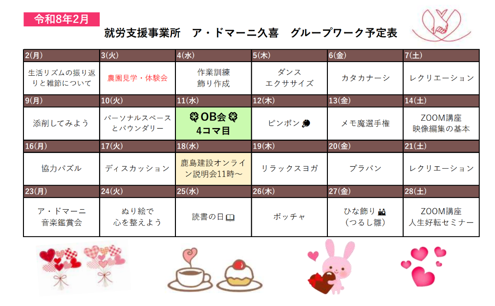 こちらでは、アドマーニ久喜で行う予定のグループワークをご紹介します。