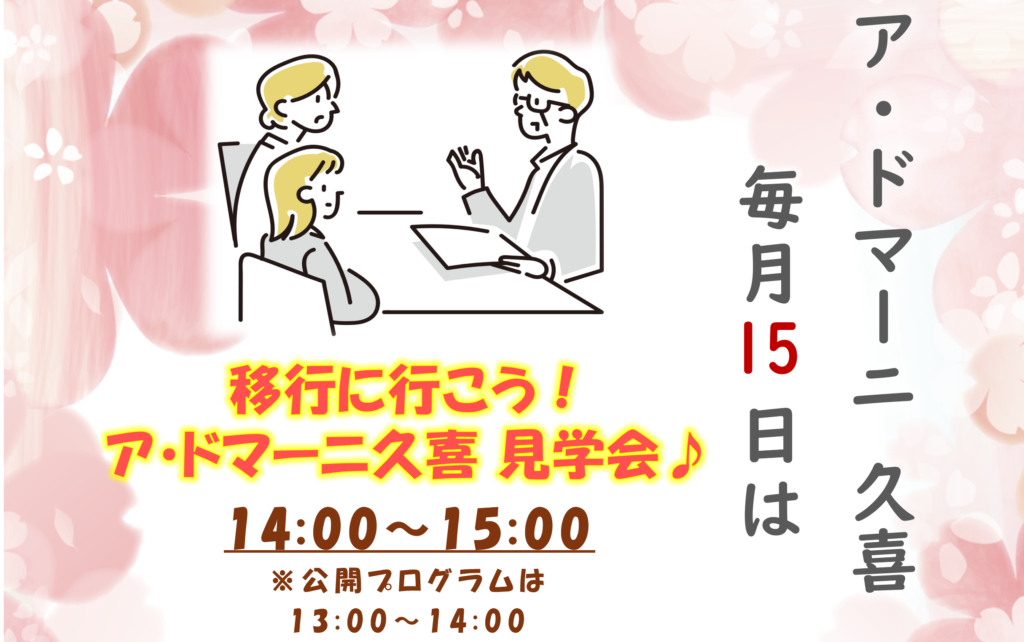 実際に来所して頂き、ア・ドマーニ春日部、ア・ドマーニ久喜の雰囲気を見てもらったり、お話を伺わせて頂きます。